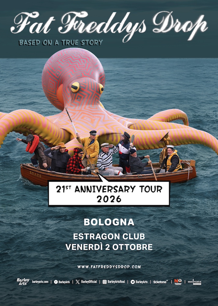 Estragon Club via Stalingrado 83, Bologna, ItalySpinta dall’amore per la musica, la leggendaria band Fat Freddy’s Drop tornerà sul palco nel 2026 per festeggiare il ventunesimo anniversario del celeberrimo album Based On A True Story. Farà tappa in Italia il prossimo autunno per tre imperdibili date: mercoledì 30 settembre all’Alcatraz di Milano, giovedì 1° ottobre all’Atlantico di Roma e venerdì 2 […]