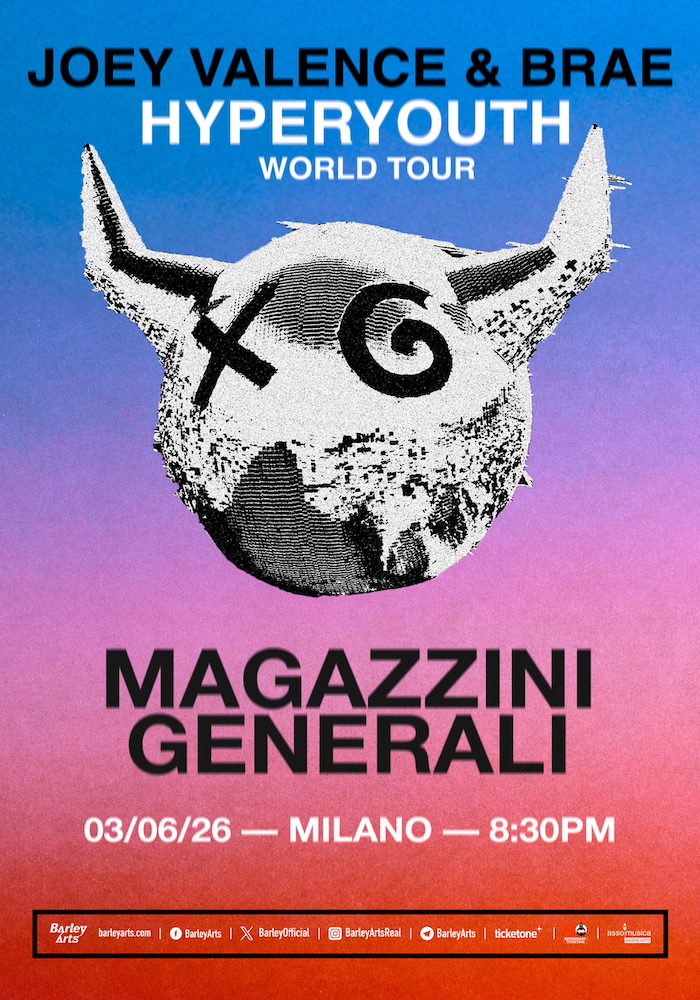 Magazzini Generali via Pietrasanta, 14 MilanoDopo il tutto esaurito dello scorso anno, Joey Valence & Brae tornano in Italia con un unico esplosivo appuntamento del tour dedicato al nuovo album HYPERYOUTH fissato per mercoledì 3 giugno 2026 ai Magazzini Generali di Milano. I biglietti saranno in vendita su Ticketone dalle 10 di venerdì 14 novembre. In soli quattro anni il […]
