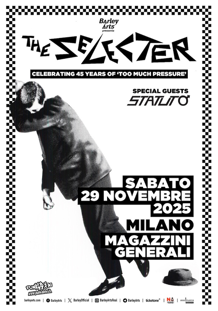 Una serata all’insegna del ritmo in levare e della ribellione elegante: The Selecter, tra i massimi esponenti del movimento 2 Tone, tornano in Italia per un’unica imperdibile data sabato 29 novembre 2025 ai Magazzini Generali di Milano, per celebrare i 45 anni di Too Much Pressure, album simbolo dello ska revival britannico. Ad arricchire la serata ci saranno gli Statuto, la storica […]